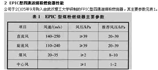 公司于2()05年9月購入由武漢理工大學(xué)研制的FPIC型四通道煤粉燃燒器,其主要參數(shù)見表1。